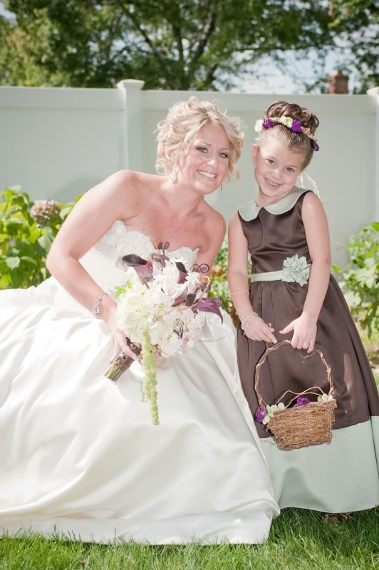 As for the FG dress…I fell in love with a Ladybug Collection dress but it was WAY too expensive. I was paying for the dress b/c it was my god-daughter as FG. I found the same dress offered by Forever Yours which was a whole lot cheaper. I wanted to color combo to be opposite of the BM dresses…I took a guess on the green to choose because I went by a swatch chart but it wound up being a perfect match! I ordered through magic moments in Port Jeff and had no problems!