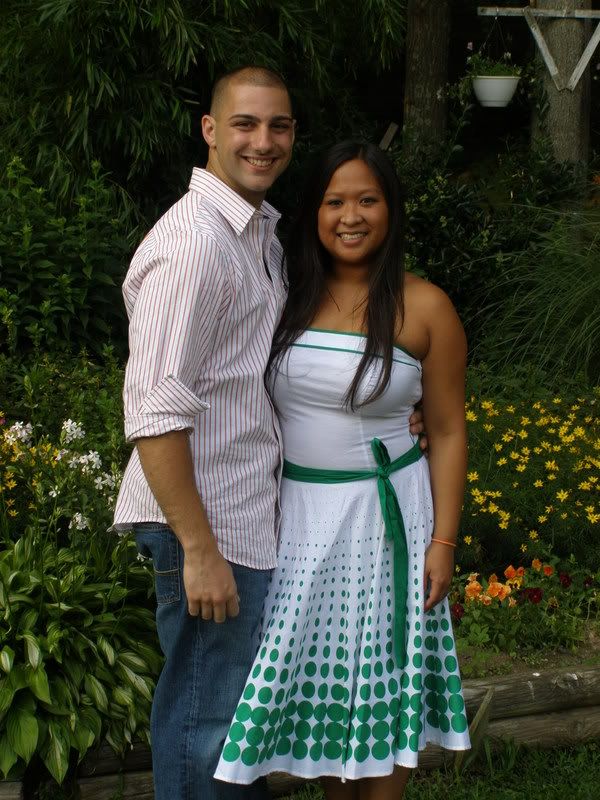 I let my sister pick out her dress because she’s so anal and I wanted her to feel hott. She picked out a halter dress that had a belt with a rhinestone buckle. They told her she was in between sizes so she opted for the bigger size just to be safe. The sample size fit like a glove, which was the smaller size she could’ve went with. After Gigi altered it, my sister said it didn’t fit as well as the sample. It still looked fabulous on her and she looked hott! Gigi made the hem a little mini train. It came out really nice.