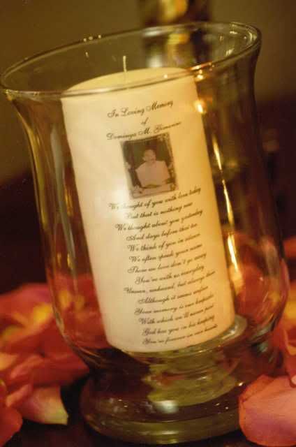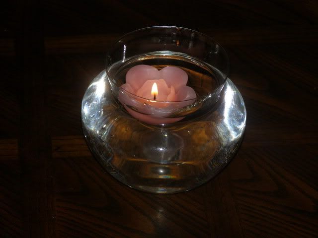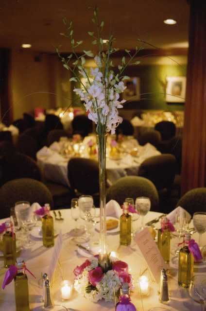 There were only four tables so I made only a few centerpieces. They were simple but nice enough to add a special touch. I bought the candles from Wicks and Things, the vases and confetti were from the dollar store.