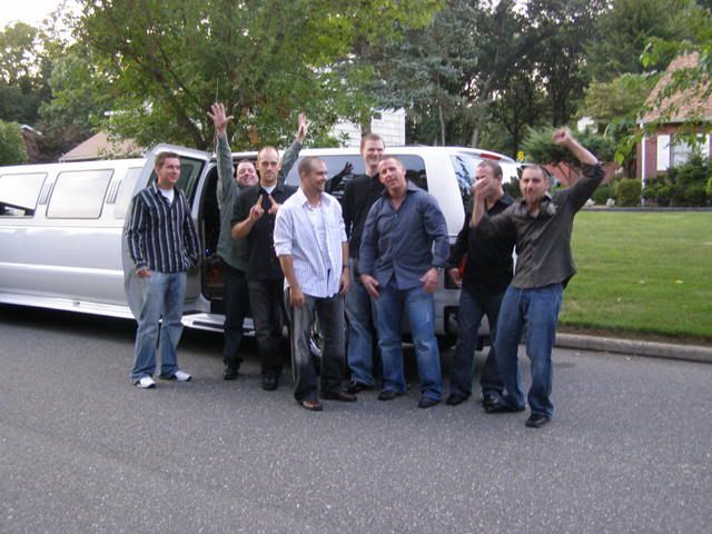 I wasn’t there so I can’t really give it a fair grade. But Jim came home a happy drunk, fully dressed and in one piece. So the best man gets an A for that. They all had a good time. They went to dinner at The Bonwit Inn like a bunch of girls and then off to The Scene like a bunch of men. They booked a limo through a guy we met at the Met’s and Yankee game. I don’t even know the name of the company. But the limo was nice and the driver was cool. The limo came to pick them up at my house so I got to see everything.