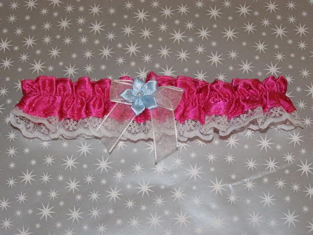 I wanted to wear something that went with my color scheme and I saw this at A.C. Moore in the bachelorette section. I bought two of them, one for my throw away. I sewed a blue flower on the one I wore as my “something blue”.