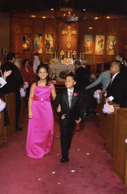 Our organist, Donna Olsen was so sweet. She always made time for our questions and she was very helpful in suggesting songs. Our priest Father Bonnie, who married my sister and my brother, was as always so involved. Although he did forget for a second that we were getting married but as the day got closer he was very attentive. He went over EVERYTHING at the rehearsal. Literally, my rehearsal was an hour long!!! But everything went smoothly the day of so I guess it paid off. We also had two other Filipino priests, Father Edward and Father Nestor, who were co-celebrants. My family is very religious so my mom asked them to be part of it as well. Three priests means we’ll be blessed three times…or something like that. We had a Filipino ceremony so the two additional priests made it more traditional. In a traditional Filipino ceremony, there are veil sponsors, cord sponsors, candle sponsors and primary sponsors…kind of like at a confirmation. So in total, there were about 40 people involved in our ceremony. Our church was very accommodating with that.