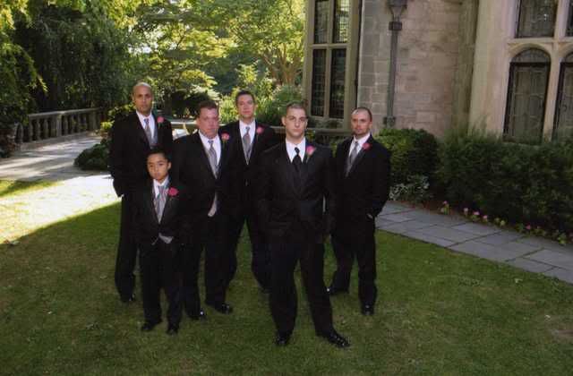 At first, Jim and I wanted fuchsia ties and vests. Not many places had that color available. RSVP was right in my town so I went in and they actually had the color but not the samples. They called me when the samples were in and it was a perfect match. The tuxedo we chose was the Perry Ellis, Sterling. Gene and Alicia were very friendly and helpful. Both were also very honest about prices and about styles. We ended up going with silver vests and ties because like always, I changed my mind. One of the GM’s jackets was too big and our jr. GM’s was too tight. But they just brought them back and exchanged jackets with no problem. All the guys looked good the day of and I’m glad we went with silver; fuchsia would’ve just been too much pink.