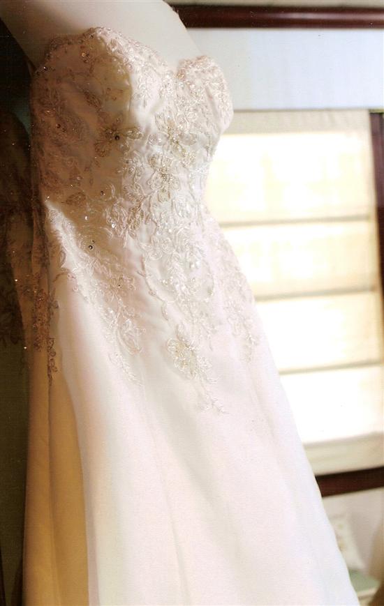 I ended up ordering from Phyllis at Bridal Elegance because she had my dress $100 cheaper than Lillette’s, and at the time the alterations were locked in at a price easily $150-$200 cheaper than Lillette’s (I know they have since gone up since Bridal Elegance has a lot more business now). I personally loved working with Phyllis, she was very sweet to me, and had a lot of patience (even when I stood in her shop for an hour when my dress first came in and had my bf standing by as my personal paparazzi!). Her alterations on my dress were absolutely perfect, not too tight, not too loose, and my bustle was just gorgeous!! I chose a pick up style and it worked out perfectly with all the embroidery on the back of my dress. The only thing I would’ve changed is adding tabs to the inside of my dress to keep my lowline bra in place, b/c I kept feeling like it was creeping up and it made me a little nuts when I was dancing during the reception!