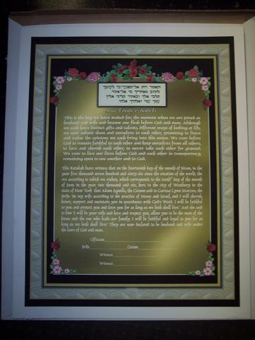 KETUBAH: A++++We purchased this Ketubah from an e-bay vendor (Art by Shoshana) and we are very happy. She sent me proofs (e-mail) before shipping the product and she made corrections until it was perfect. It is beautiful!