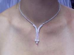 I purchased the “day of” jewelry from the show case in Renates Bridal located in Lindenhurst. I love it. It incorporated beads and rhinestones just like my dress.