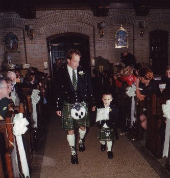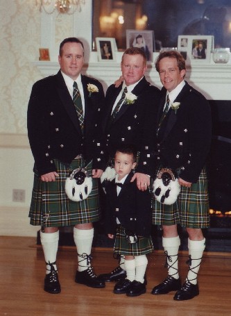 KILTS: The Piper’s Cove, NJ – 8.5: My DH has really broad shoulders and short legs (sorry honey), so he hates how he looks in a tuxedo. I had joked about him wearing a kilt and he said he’d love to, so we decided to be daring. We ordered the Kilts and rest of the accessories by fax. I made a few phone calls to make sure they had the order and understood everything, but each time I had to go over it all again, which was a little concerning. The ladies who work there are a hoot and very sweet. I bought ties in the same tartan (Irish National) instead of them wearing the bow-ties, and I also bought the special socks with shamrocks embroidered and their delivery was quick. The kilts arrived at the Best man’s house 3 days before the wedding (they were supposed to come to our house) and everything for my DH was wrong and a couple of things for the RB too. He had to drive to NJ the next day to exchange it all and asked them to make sure they billed him instead of his brother. After that I was unsure about them wearing the kilts, but when I arrived at the Church and saw how they looked, I was blown away. They looked really sharp and this is probably the one and only time that I will admit my DH was right. They still ended up billing everything to the BM, so they lose marks for that.