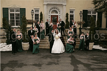 We met with Frank from FM about 8 months before our wedding. He was very nice and we liked him immediately. We also liked another company so we were torn. FM’s prices are very good, so we ended up going with them. We met with them once to do our contract and hand over a deposit, then again about 7 months later to go over the day of details with no contact in between. At our final meeting Frank really seemed to get what we wanted, despite the fact that he forgot to bring our contract, we felt pretty confident he was on board. The day of he wasn’t as sure I guess. He messed up our entrance that we went over in detail with him (DH and I were supposed to come in to a separate song that he didn’t play until he had announced us, we made our entrance, high fived all of our bridal party and then DH dipped me, then the song started.) He messed up the speeches, my father was supposed to speak first, something we discussed with him, but he just went right to the best man. Also, the best man was kneeling by our sweetheart table talking to us and the next thing we knew Frank just announced him, really putting him on the spot (he had told us he was going to discuss everything he did with us before he did it, rather he just announced things and we went along). I then tried to quickly and discreetly correct him and ask him to have my Dad speak after all the speeches were done (best man, maid of honor and matron of honor) but he got mixed up and started to announce my Dad before the maid of honor had spoken, it was a big mess. Finally, we gave out a wedding CD favor and said every song on the favor had to be played. He forgot several songs on the favor. These are all things that everyone says nobody noticed but Matt and I, but still we know it happened. They did play a lot of great music and had the dance floor mostly packed throughout the night.