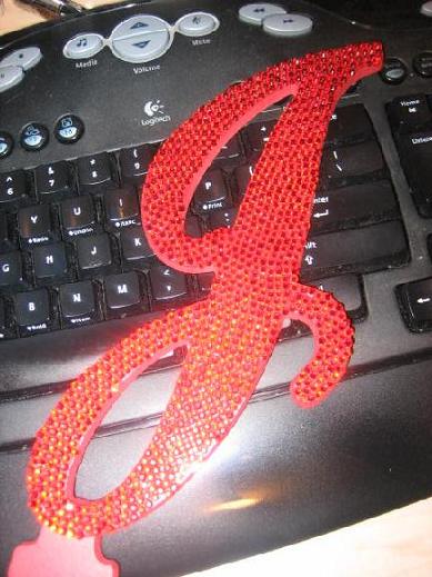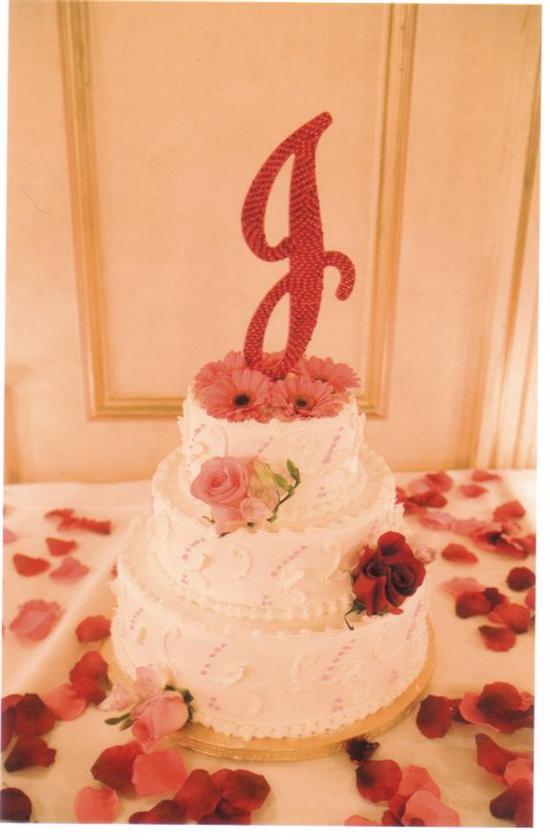Initial cake topper with rhinestones - The biggest pain of all, but when I saw it on our cake, I wanted to cry. I got all of the supplies from Ebay. But don't make the same mistake I did, I bought really small rhinestones by mistake, so when it was all said and done, I had nearly 1000 rhinestones on the cake topper!!!