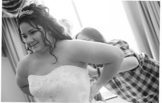 After my gown being butchered by Lestans, I feared my gown would never look normal again. It was Phyllis who pointed out all of the things wrong with my dress, and once she did I realized she was right. After all, what the hell do I know about what to look for when it comes to mistakes on a wedding gown? I had about 3 or 4 fittings which started in mid March, and by the time my final fitting came around, my gown was perfect. The skirt was straight, the length was all even, the straps were clean & straight. I was amazed at the job she did and how she managed to fix my gown in time. She was my God send, and I will forever be thankful to her.
