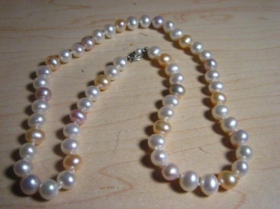 My tri-color pearl necklace that DH bought me for my 30th b-day was the only thing that worked with my gown. Everything else either looked like it was competing or was too simple. All I know is the box says 'Christian Bernard - Paris' and he said he got it in Walt Whitman mall.