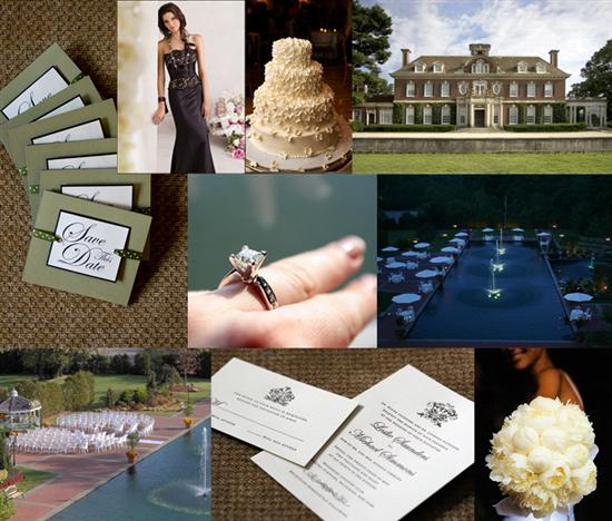 I decided to go with Chocolate brown, Sage, and Ivory. I made a collage to see how everything will work together.
