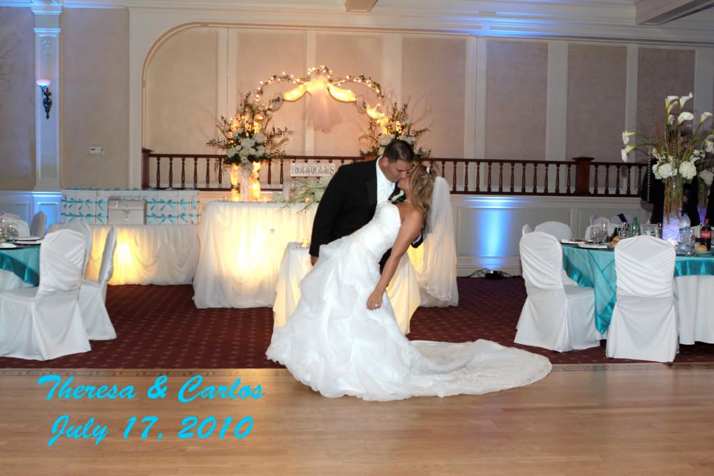 I saw MRG Productions at one of the many bridal expo’s I attended. Entertainment was a very important aspect for my husband and I. My husband is 100% Portuguese so we really wanted a DJ company that could provide both Portuguese and American music. At the expo we spoke with Robyn which I might add is a sweetheart; she assured us that providing Portuguese music would not be a problem. We went home that night and we both knew they were the DJ Company we wanted for our wedding. We met with Marty (who is awesome) about a week later to go over what we wanted. Marty provided us with everything DJ, MC, Up lighting, Plasmas, Gobo, Zap Photographer, Percussionist.