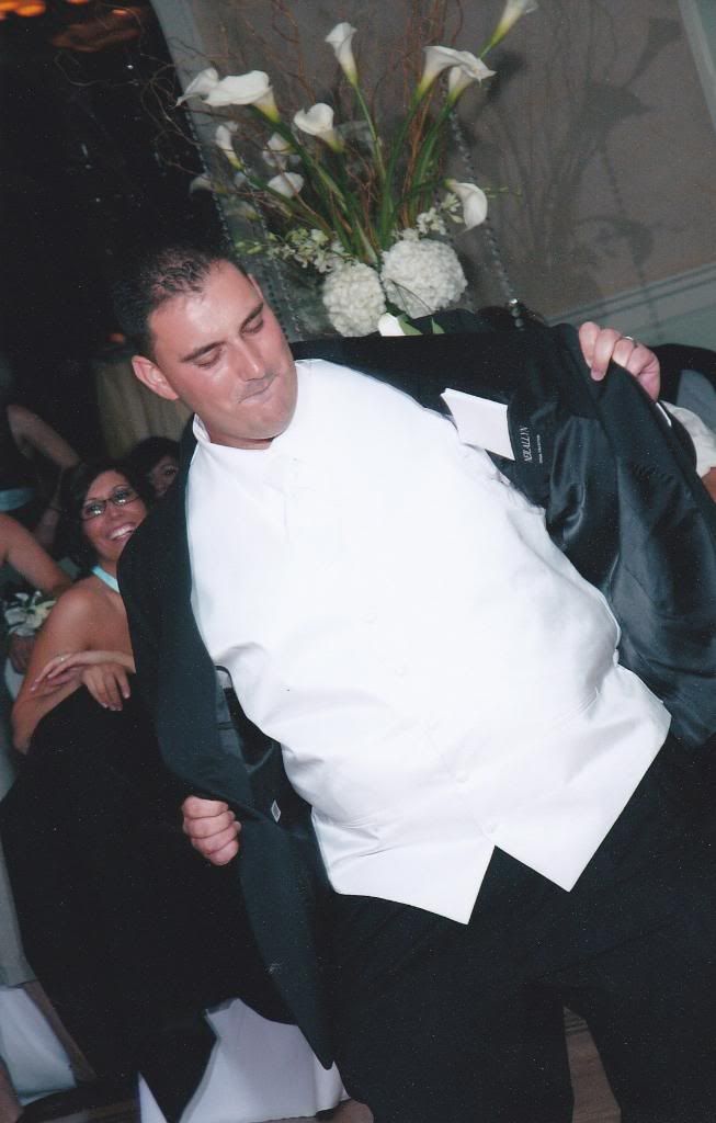 My mom did a really good job hosting the rehearsal dinner. She rented a huge tent, tables and chairs and had it set up in her backyard. She had the food catered by Mama Lombardi’s; there food is awesome.