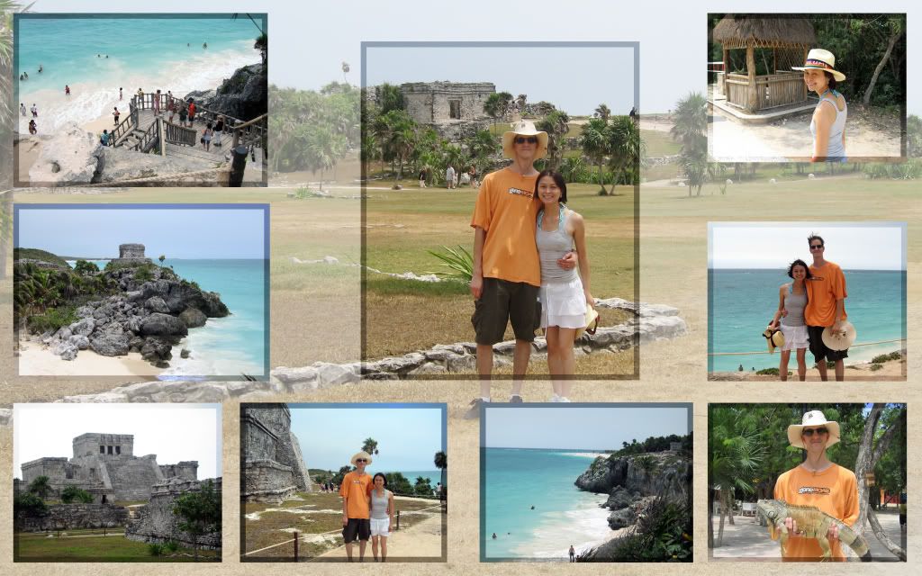 The weather in Mexico wasn't bad. It only rained for 2 nights and it lasted for about 1/2 hour each. We missed Hurricane Ike by about 160 miles. That is very close considering the hurricane itself is about 600 miles in width. During the day it was reallly hot. I had a heat stroke when we went to Chitchen Itza and was sick for a day or two. Got my first sun burn when did the swimming with the dolphins. I can't wear any sunblock because it's harmful to the dolphins. And because of that our couples massage wasn't that enjoyable.
