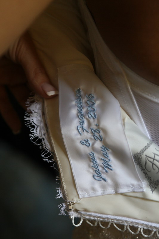 Dress label-(9)Ebay vendor- excellent This was my something blue. I thought it was very different. I ordered ivory but the label came in white…not a big deal. It was a nice touch.