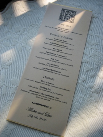 A special thank you to liweddings.com – all the weddings I’ve been to have been non-catered homegrown affairs. Planning a Long Island wedding was a real challenge! I may not have posted a whole lot, but I would not have been able to plan my wedding without this site.On to the review – I included prices which some may find tacky, but I think will be useful to all brides in the planning process. Please note that I booked most of my vendors in the spring and summer of 2005 so pricing will be different for 2006 and beyond.