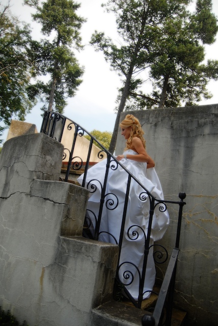As far as alteration I wouldn't give her an A because it appeared that she didn't do the alterations of my 3rd fitting: 1)the hook on top of my zipper which had fell off on my 2nd trial was not fixed. 2) I also don't know whether she made the alterations that she promised to do on my 2nd trial such as shortening the tulle (don't remember what it's called) inside of my dress 3) tighten my bustier. If she did tighten it than I must have lost a lot of weight b/c the dress was very loose on top and created a gap, which was stressing me out on the day of the wedding. The dress was also long and I had to hold it as I was walking down the isle which didn't look as the dress was meant to look. You will see that instead of my holding my father's arm he is holding mine b/c both of my hands were busy (one holding the dress one holding the flowers). I ended up cutting an underlayer of the dress during the reception as I almost tripped a few times b/c it was long.