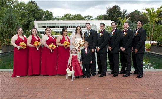 We got married in the Garden area (the downstairs room, outdoor cocktail hour, and ceremony by the pool area). It was beautiful and everyone said it was amazing! We're Jewish so we used the outdoor gazebo as our Chuppah and I think it was a little bit hard for our guests to see us - the gazebo is quite short so the tops of our heads were cut off (just a little bit) in all of our guests' pictures. The chairs used at the ceremony were just white plastic chairs which I felt were a little tacky, but it didn't bother me THAT much. The Cocktail Hour was great and everything looked very nice. There is a big tent set up on one side of the grounds, and the rest is outdoors. Minor complaint is that there was a bunch of food inside the tent but a majority of the people were outside so they missed the platters inside there.