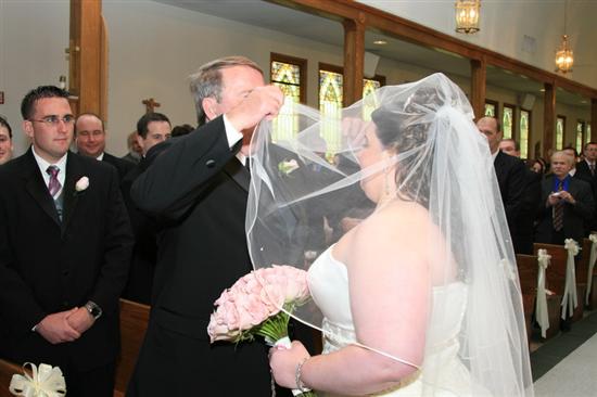 I had a small freak out regarding my veil. For some reason I had never given much thought to a veil…just knew that I didn’t want to spend hundreds of dollars at a bridal shop for one. I had a rude awakening about a month before the wedding when a bride on here getting married a couple of months after me was worried about getting her veil in time. Oops…it never occurred to me that they took a lot of time! Thankfully, all of the ladies here recommended I go to Barron’s in Tri-County flea market. They have beautiful veils – any type you can think of – for a fraction of the price of what I expected to spend. Yana Barron was great to work with and was totally right about which color I should purchase (I was leaning towards a different shade of ivory and she steered me in the right direction based on my swatch). I had a two tier (one used as blusher) with a very thin satin trim and a few rhinestones for sparkle. Loved it and wore it the whole day/night.