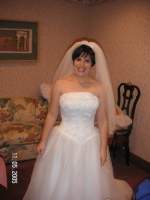 DRESS: RK Bridal (Da Vinci) ASince the wedding was planned on fairly short notice, I didn't have a lot of time to look at dresses. I went to a few places locally and got to know the styles that looked best on me. Then I went to RK on my lunch break and tried on dresses in that style. The woman who helped me was very honest and helpful. I had them do my alterations, which were done really well.