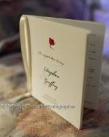 CUSTOMWEDDINGPROGRAMS.COM FOR CEREMONY PROGRAMS: 8.5My programs turned out beautifully, but I felt we struggled with them to get them as we wanted. They made numerous spelling errors on the proofs they e-mailed us, and I was just getting tired of editing, I mean, wasn't that their job? They are located in Louisiana and had to evacuate their office for Hurricane Katrina. Their final proof they had to just send to print without my finalizing the cover in order to get them to us. We just crossed our fingers that they would turn out correct, without any errors, and they did. I added 4 varieties of pressed flowers on the covers to add some color. (An idea I also got from here)