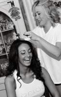 Friend of mine who's been doing hair forever. She did a very simple half up do with loose girls. Nothing dramatic but very elegant....loved it! AND she was one of my bridesmaids!