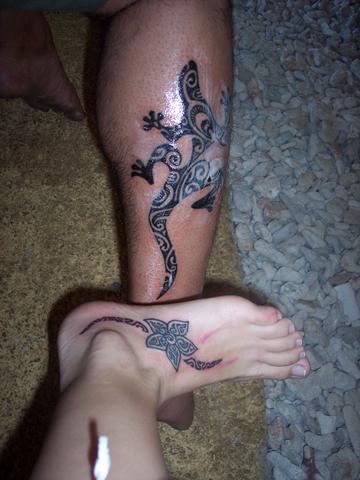 Friday, June 16, 2006This was a day we were waiting for since before we arrived here in FP islands. On Tuesday, we made an appointment with Roonui for Tattoos. He is a when recommended tattoo artists known throughout the world. His work is amazing. Today we both got tattoos. I got mine on my foot which is a flower that includes Tahitian design and Adam got a gecko on his calf. It hurt a lot, but was well worth it. Everything was clean and he spoke English. NOTE: Him and his family are moving to Vancuver, Canada in the middle of July.