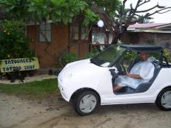 Tuesday, June 20, 2006Adam and I were on a kick to get another tattoo by a well know artist on the island named Marama. Today we awoke and ate breakfast at the hotel (buffet style) and headed over by boat to the main island (transportation is free and is provided by the hotel – comes every hour). We rented a small car with no A/C and no radio because there wasn’t much left (I recommend making a reservation). We drove around the island until we got to Marama’s shop. Unfortunately he wasn’t there and as a matter of fact, he hasn’t been there in a few days according to natives. He races Kayaks and is very busy. Another rumor is, he had no more needles….better off he wasn’t there. We spent a few hours on the main island and then headed back to our resort.