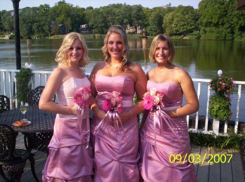 Answer; My dress was made by a UK designer named Ronald Joyce. I called paradise bridals to ask about how many dresses they have by him and they said ' We dont carry Ronald Joyce' Thats funny cuz my label inside my dress says 'RONALD JOYCE' haha...so like I said I dont recommend them...but you def can call other places or even go to the store and try it on. You can tell them ( Kristin Johnson ) ordered the dress and they can look me up. MY BM dresses are by alfred angelo ( seperates ) in light pink and mauve! Oh and for those who asked, I do not have a prob telling you how much i paid. I paid under 900 dollars for my dress.