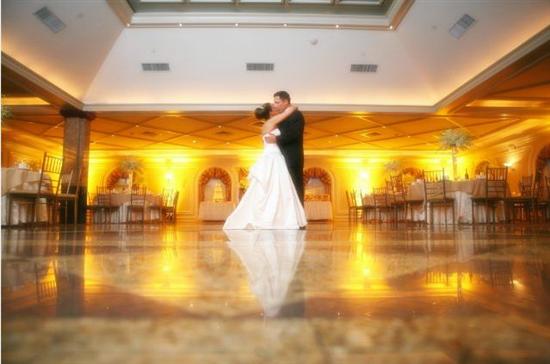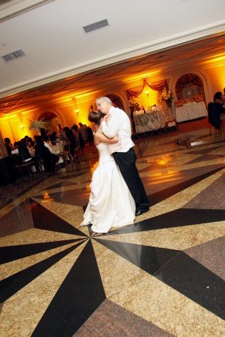 Since both the DH and I are from two big Puerto Rican families we wanted a DJ that knew their stuff. Jose, the owner of Eleganicia agreed to MJ our wedding and he and his crew kept the party going the whole night. They also put up pin lighting around the room to give the room a golden color and took the monogram my cousin designed and projected it on the dance floor.