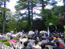I'm not a frequent poster here but since I've always loved reading other brides' reviews, I thought I'd leave one too.We had a great wedding at the Westbury Manor!! The weather was *amazing* - they were forecasting rain since a week before, and throughout Friday night it was pouring. It was supposed to stop raining in late afternoon, but since my ceremony starts at 12:30 I was beginning to tell myself that it was no big deal...although I had loved the idea of an outdoor ceremony at the Manor. Well, I'm so happy the forecast is always wrong - it stopped raining while I was getting ready, and just as I stepped outside for pictures around 9:30, the sun came out!!! And we had a wonderful sunny day for the rest of our wedding!