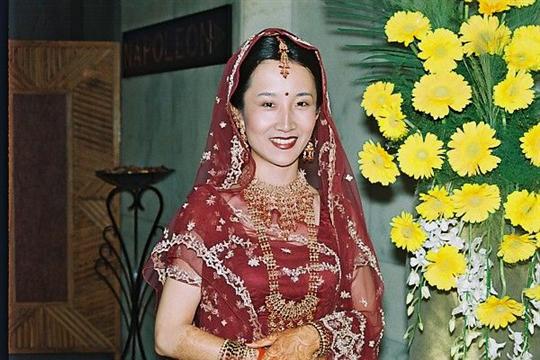 #2: Me in a dress called Lehnga. Different from a sari - I really liked this one also. You can sort of see the henna pattern (Mehndi) on my hands.