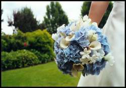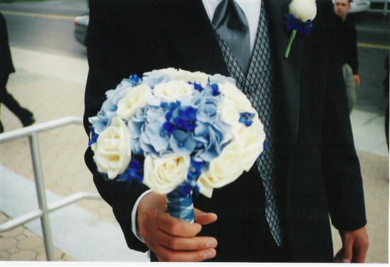 1 Bridal BoK (preferably off white/light ivory roses and or peonies with a splash of light blue)
